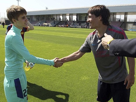 Justin was a special invited Barcelona to play ball there. Why while on tour in Europe, he played football with Barcelona jersey to wear.
